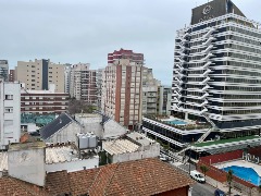 Departamento de 3 ambientes con living comedor con amplio balcón saliente con vita lateral al mar, cocina completa con barra desayunadora y ventana con vista al hotel Costa Galana, hall de distribución con dormitorio con placard, baño completo y dormitorio en suite con placard a medida y vista lateral al mar. Dos cocheras.
