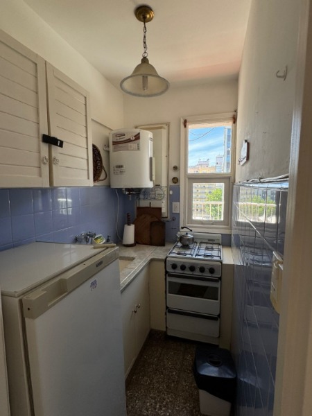 El departamento cuenta con : Ambiente y medio. Al frente con placard y salida al balcón terraza. Cocina separada y baño con ducha. Sup cub 28 mts estado original . Pintado. Sin muebles.