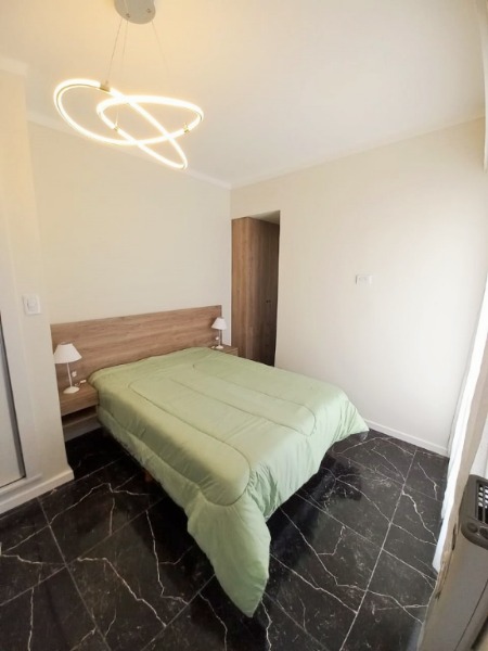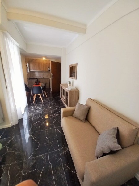 El Departamernto cuenta con : Amplio ambiente lateral , con piso de ceramico .Cocina incorporada .con heladera lavarropas cocina y microondas a estrenar . Amplio placard , baño com pediluvio .revestido en ceramico . Vanitory , Calefactor pintado amoblado. Cortinas luces gas agua y desagues . sup cub 30 mts 2
