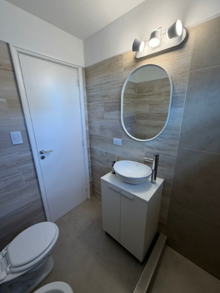 El Departamento cuenta con : Living comedor al frente con balcón terraza . cocina integrada con barra desayunadora. Amoblamiento a medida anafe a gas , horno , extractor . toilette de recepción . dormitorio en suite con vestidor. y baño completo con mampara y toallero . calefacción por radiadores, con caldera individual.