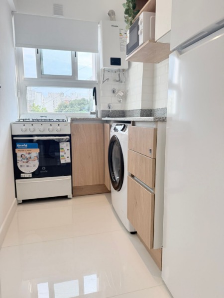 El Departamento cuenta con :Ambiente amplio,Living comedor al contra frente con balcón francés. Reciclado hecho a nuevo Cocina en L con lavarropas. Sommier con respaldo, Baño principal amplio completo y con extractor, mampara, Sanitarios se entrega totalmente equipado .Obra de gas ok. Calefactor tiro balanceado .