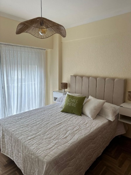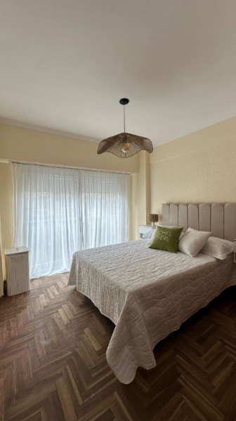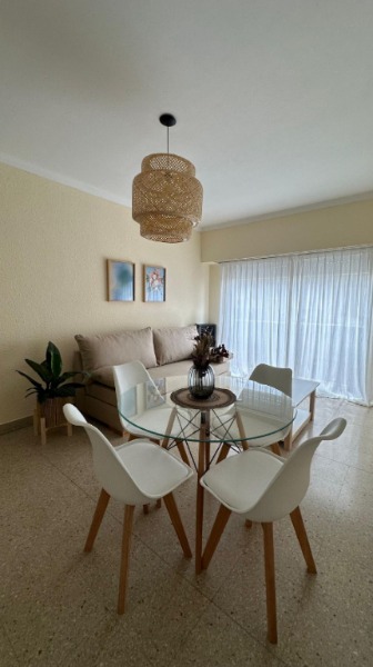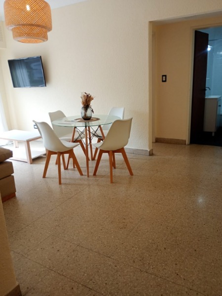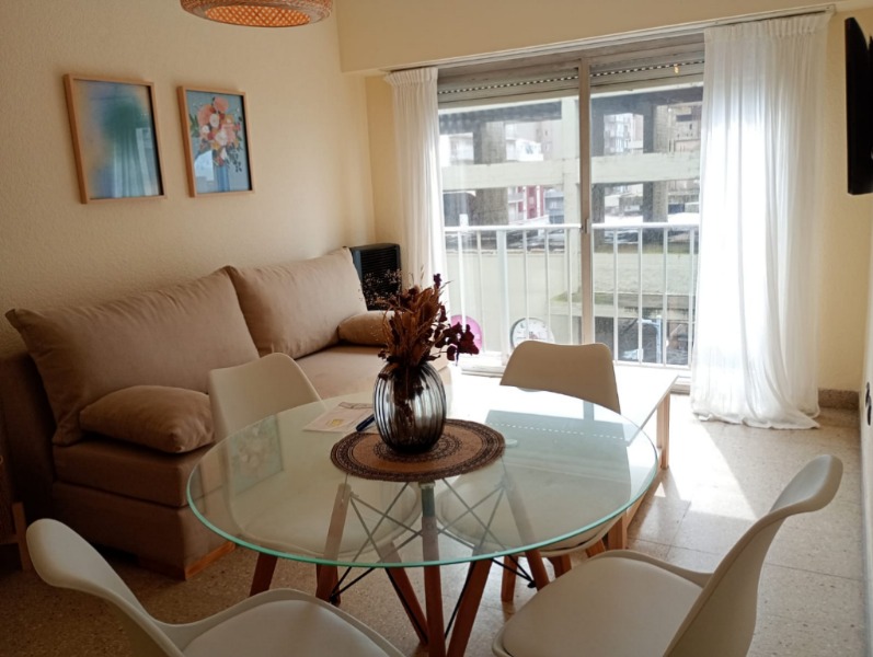 El departamento cuenta con : Amplio living-comedor a la calle con balcón soleado. Equipado con mesa + 4 sillas, TV 43” y sillón. Balcón con vista lateral al mar. Cocina separada, cómoda y funcional, heladera, cocina, termotanque y gran espacio de guardado. Dormitorio al frente con placard y balcon, cama de dos plazas, respaldo. Baño completo con bañera. Calefacción por tiro balanceado. Equipado con muebles y decoración incluidos.