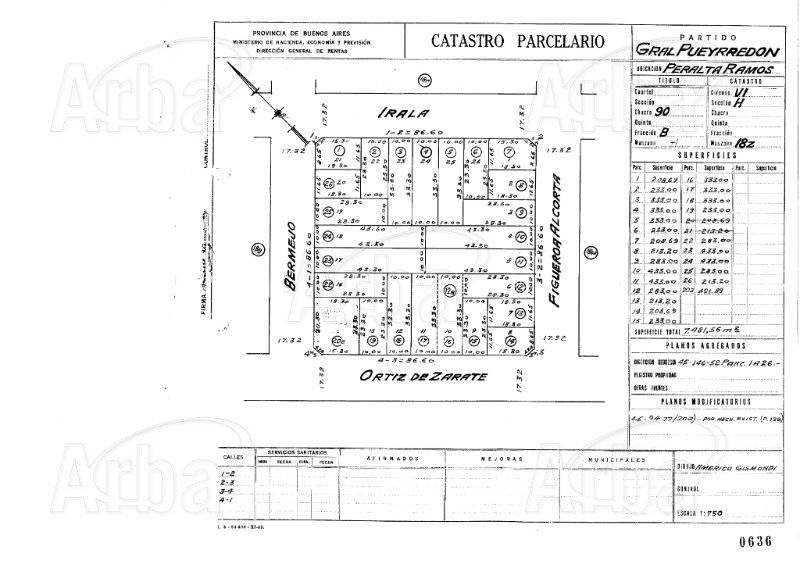 Sobre 3 lotes de 10 mts. de frente cada uno, dos de ellos con 43,30 mts. de fondo y el restante de 28,30 mts. totalizando 1149 m2. Y cubierta de 1.572 m2., estando construido el 100% de los lotes.